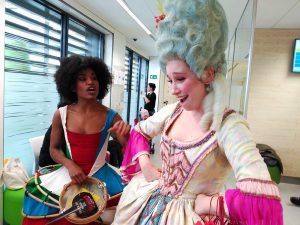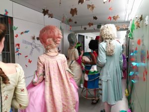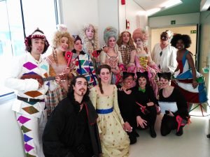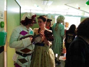 Conjuntament amb les Mestres de l’Escola dels Pins i els personatges d’Scaramouche del grup Dagoll Dagom hem celebrat el carnaval. Ens hem disfressat de gatetes i hem anat per tot l’hospital. Els nens han gaudit molt amb les disfresses i els personatges. En acabar Dagoll Dagom ha ofert una petita representació d’Scaramouche al vestíbul principal.