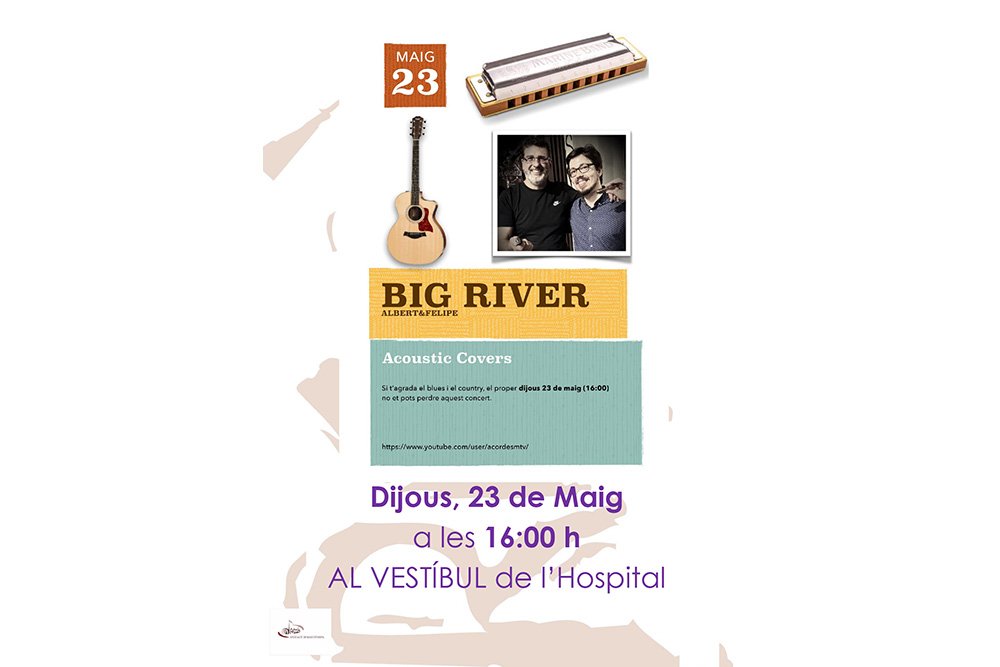 [vc_row][vc_column][vc_column_text]El proper dijous 23 de maig podrem gaudir de Big River al vestíbul de l’Hospital Sant Joan de Déu Barcelona. No us perdeu el concert de maig !! Us hi esperem a les 16h[/vc_column_text][/vc_column][/vc_row]